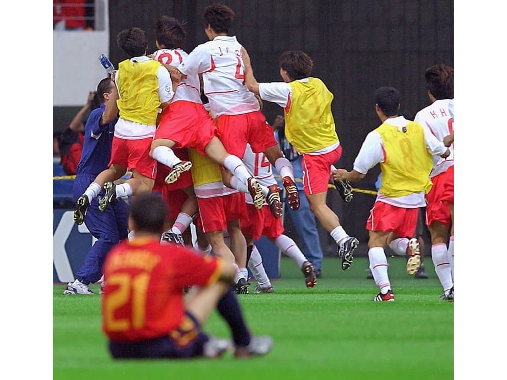 Um dos maiores ‘assaltos’ daquela copa do mundo. O terceiro à favor da Coréia. Um dos principais nomes da Espanha naquela copa, pagou o “pato” por não ter controle emocional suficiente para os pênaltis, e o ‘juizão’ colocou a Coréia numa inédita semifinais de Copa.
