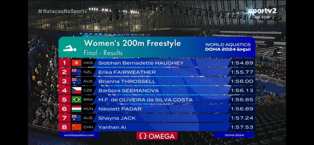 Tem brasileira entre as 5 melhores do mundo! Depois de conquistar o 4º Lugar nos 400m, Mafe Costa conquistou o 5º Lugar nos 200m Livre no Mundial de Esportes Aquáticos em Doha.