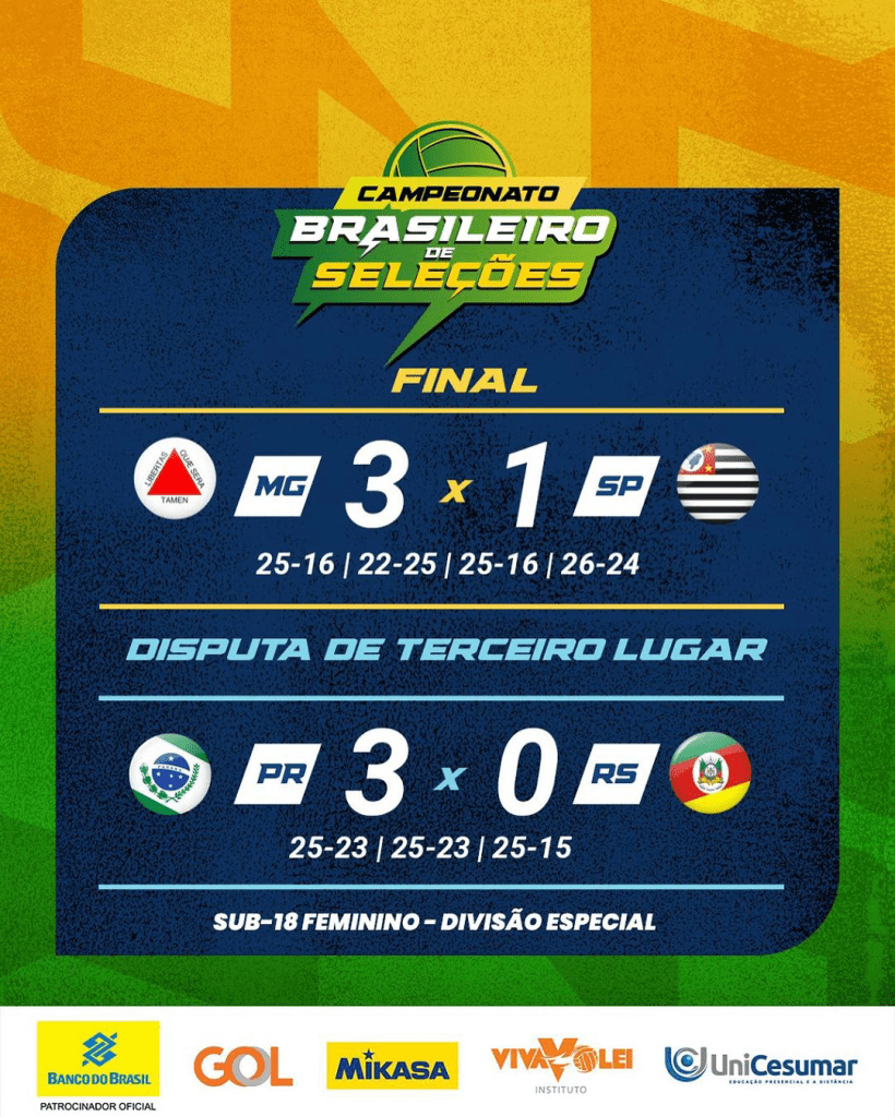 Minas Gerais 3×0 Distrito Federal (25-11 | 25-19 | 25-14)