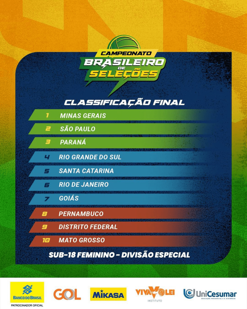 O pódio do torneio contou com a presença de: Minas Gerais, São Paulo e Paraná
