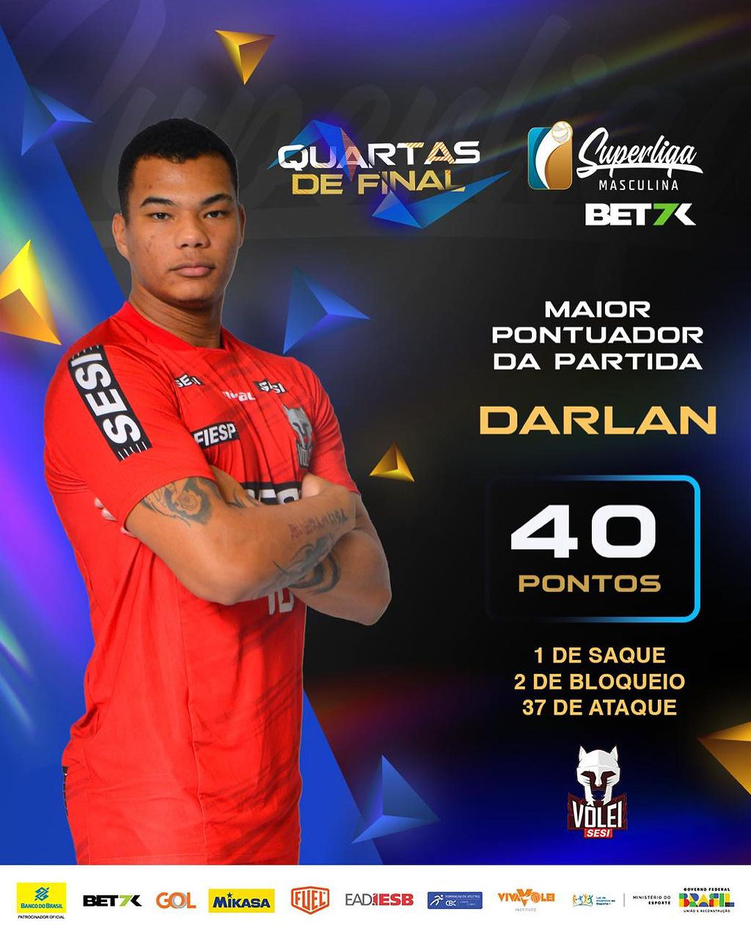 Em Bauru, tivemos o jogo mais duro da série, com direito a um 35×33, no segundo set, e o único jogo que viveu o tal do tie-break. O Araguari abriu 2×0, o SESI Bauru fez dois sets perfeitos, com show de Darlan, conseguindo empatar, mas a sina e o bom vôlei estavam do lado mineiro.