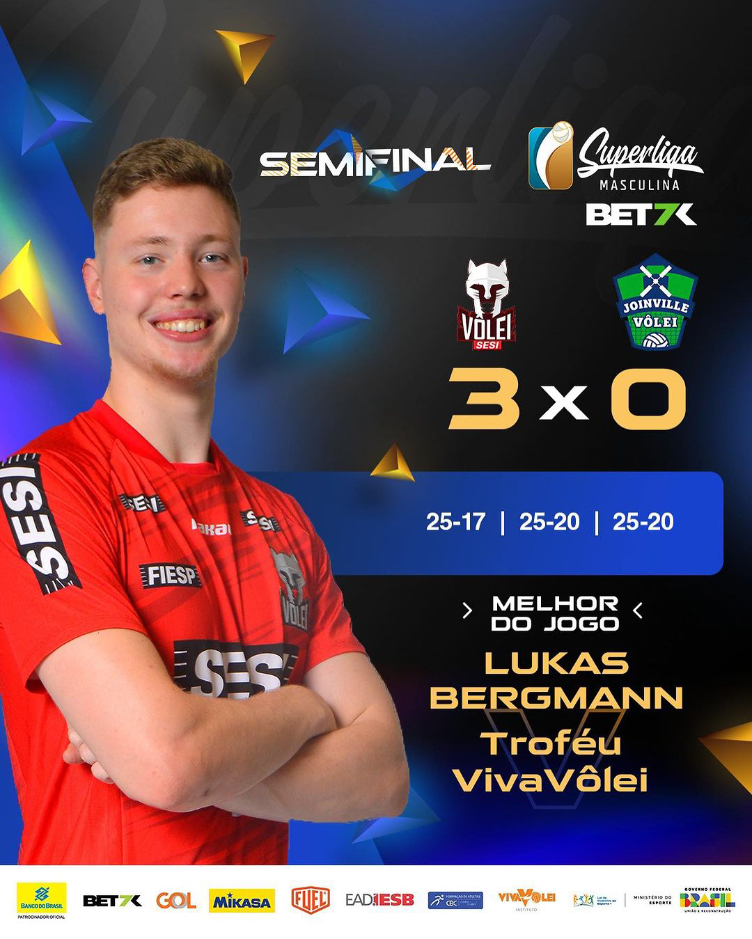 Foi com convicção! Em mais um jogo incrível entre SESI Bauru e Joinville, o clube paulista garantiu a final bandeirante no Recife. Em um jogo perfeito de Lukas Bergmann, Eder e de Darlan, o SESI Bauru superou o resiliente e bravo time do Joinville por um enganoso 3×0, visto o quão duro foi garantir a vitória. O último ponto do jogo, quando Darlan acertou um ataque perfeito e o Joinville lutou até o último centímetro para evitar a queda da bola e a passagem para o lado do Bauru, foi a síntese perfeita de um jogo inesquecível. Com o mínimo de erros e com a qualidade que apresentou por quase toda disputa da Superliga, o SESI Bauru fez o público ir ao delírio com esse retorno épico à Final do Principal Torneio de Vôlei do Território Nacional. Parabéns ao Joinville pela valentia, e ao SESI Bauru por voltar a Final com o brio e a determinação de um time que quer muito ser Campeão Brasileiro de Vôlei.