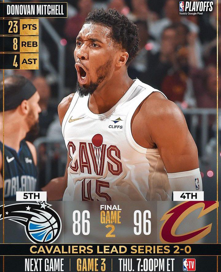 Os Cavaliers venceram tranquilamente os Magic com outra atuação impecável de Mitchell. Dois jogos em casa, e duas vitórias.