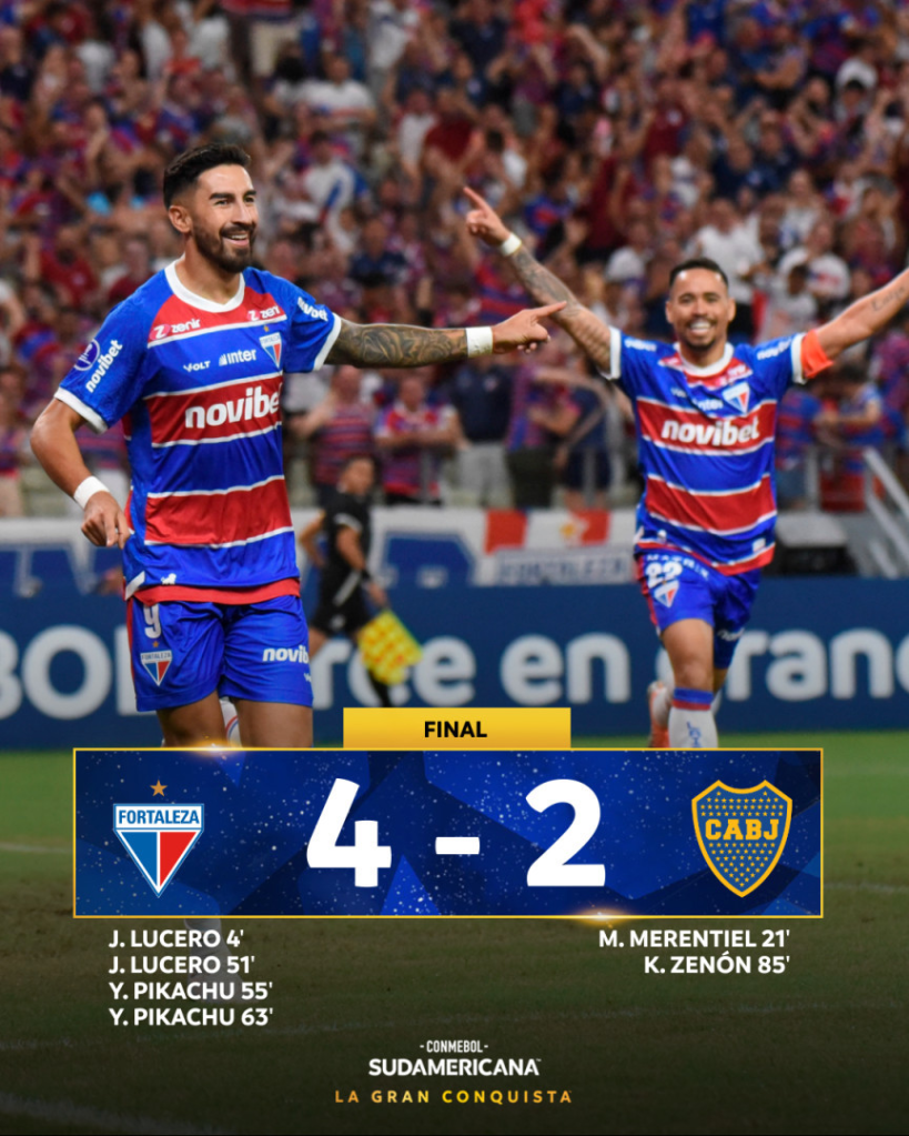 Com o estádio lotado, o tricolor mostrou que o Castelão pode ser pior do que La bombonera. Com direito a “hat-trick de assistência” de Pocchetino, além do baile de Luccero e Pikachu, o Fortaleza bateu o Boca Juniors por 4×2, e olha que saiu barato, o Fortaleza poderia ter feito muito mais diante as chances que teve e o jogo que fez.