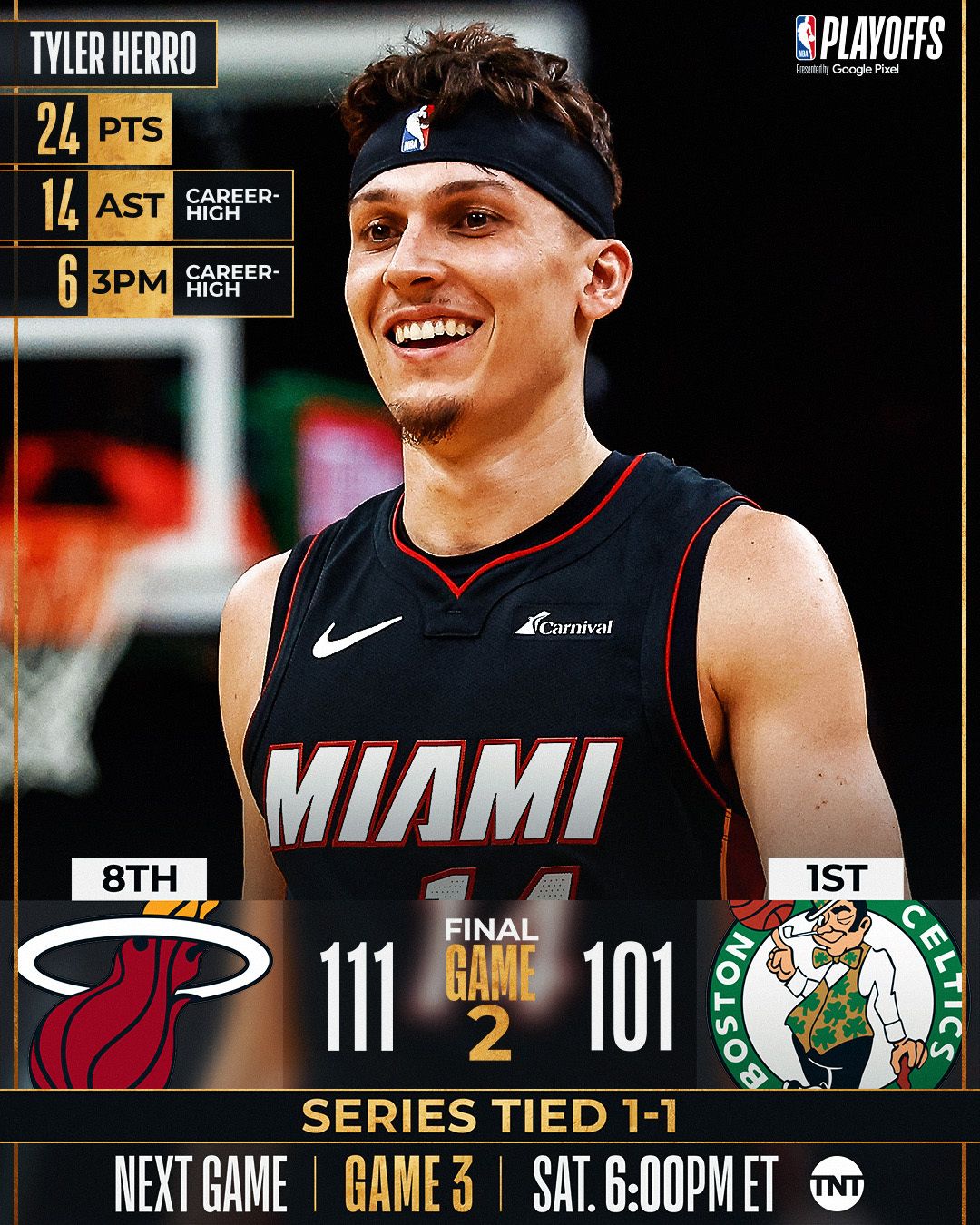 O Miami Heat conseguiu aprontar, de novo, para cima dos Celtics. Esqueçam o passeio da primeira partida, o Heat soube conduzir o jogo a ser favor, principalmente, no terceiro período e assim surpreender o time de Boston, em pleno, TD Garden. Série empatada, porque esse confronto não sabe ser mais ou menos.