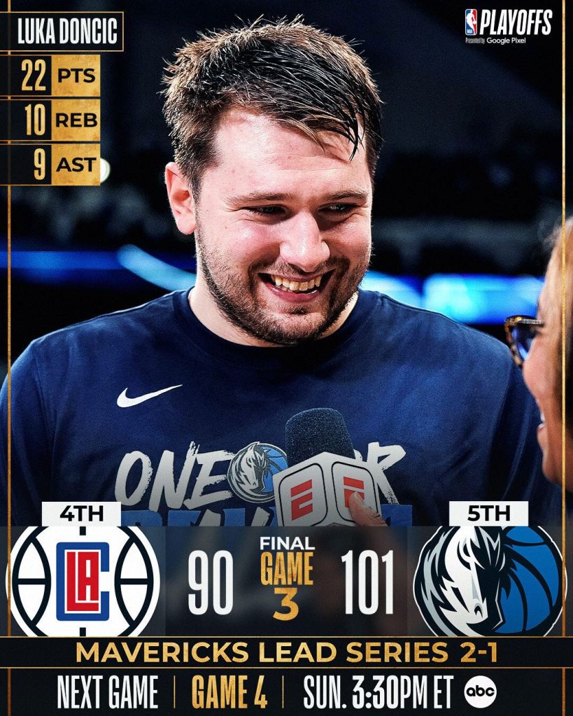 No Texas, Doncic dá show, anota um Double Double, e ao lado, principalmente, de Irving, carregam os Mavs para a virada na série diante os Clippers.