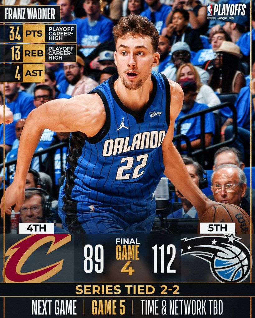 Já em Orlando, em grande jogo de Wagner, o Magic superou os Cavaliers e garantiu o primeiro empate de séries nesse playoffs. Até agora, só ganhou quem jogou em casa. 2×2.