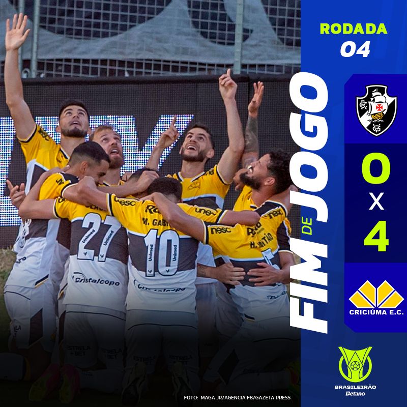 No São Januário, a torcida do Vasco presenciou o baile de Bolasie. O congolês fez o que quis, e com direito a um golaço e duas assistências, ajudou o Criciúma a vencer por 4×0 o time Cruzmaltino. A destacar também a atuação do goleiro Gustavo, que catou o pênalti de Vegetti, quando o jogo ainda estava 1×0. O Criciúma segue invicto, enquanto o Vasco segue em crise. Ramon Díaz foi demitido pelo TWITTER (X é da Xuxa)