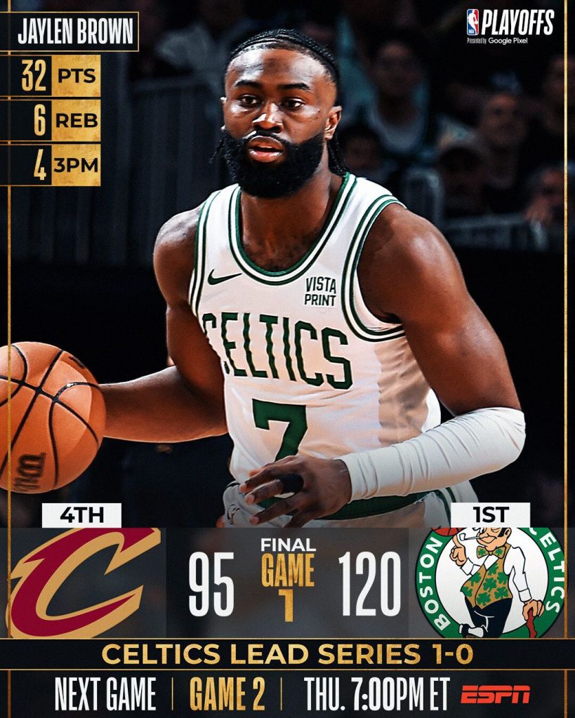 Em Boston, uma vitória plena, convincente e firme dos donos da casa. Em noite inspirada de Jaylen Brown, os Celtics não só venceram o jogo, como foram superiores em todos os períodos.