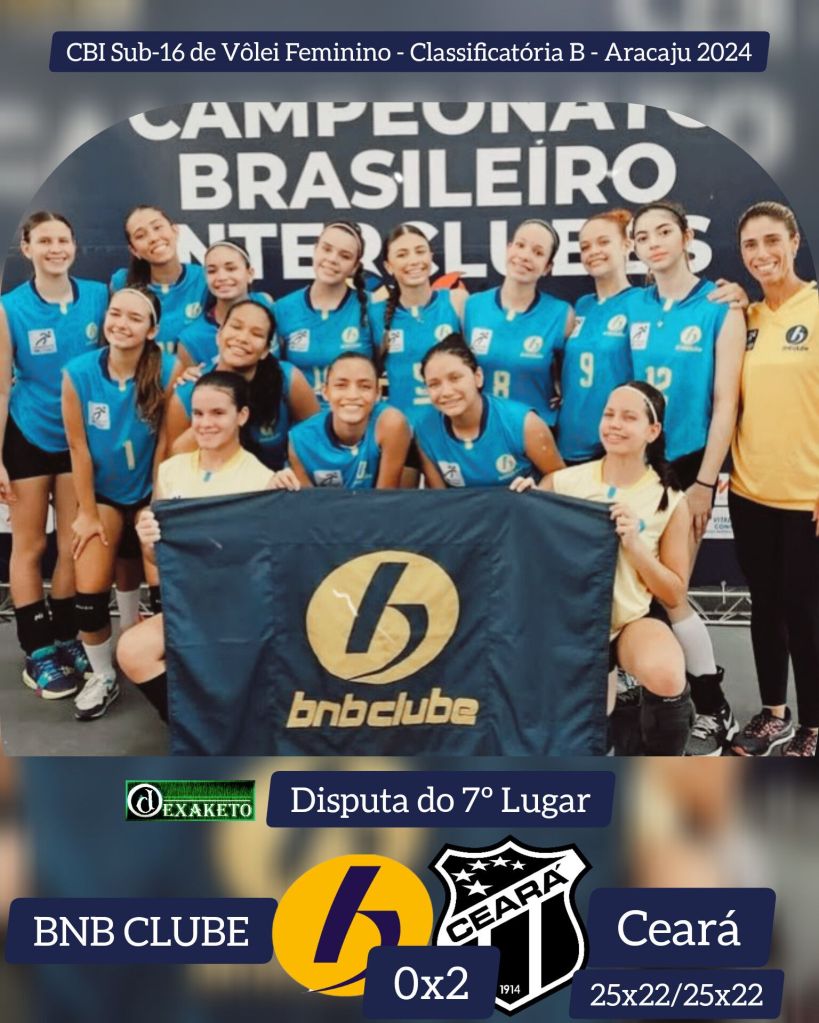 No segundo set, o BNB Clube iniciou muito bem, chegando a abrir uma ótima vantagem para a equipe do Ceará, todavia, aqueles velhos erros bobos, inocentes, voltaram a aparecer, logo do meio para o fim do set, o Ceará tinha controle total da partida, tanto controle que acabou adormecendo e quase permitiu a chegada da equipe do BNB, porém após um tempo técnico pedido pela equipe do Ceará, as meninas do alvinegro acordaram, fecharam o set e garantiram o sétimo lugar, sobrando para o oitavo.