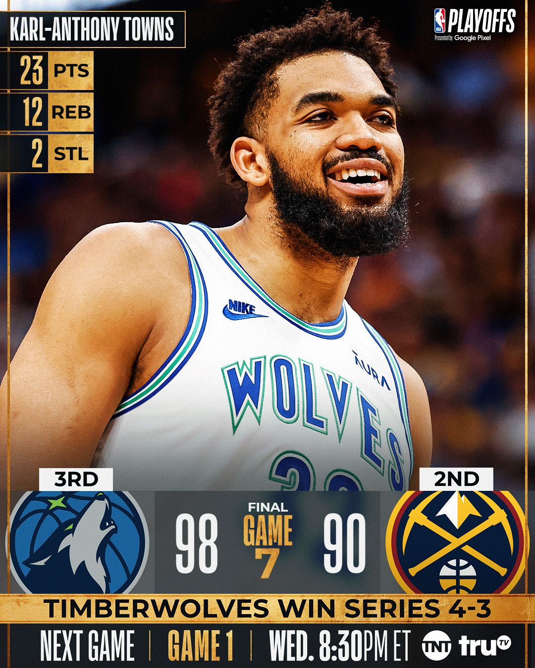 Já nas Semifinais do Oeste, os atuais Campeões, o Denver Nuggets, fizeram um primeiro tempo, ou seja, os dois primeiros períodos de almanaque. Com Jokic arrasando, parecia que a classificação estava decidida antes do intervalo, entretanto, tudo mudou no segundo tempo. Já no terceiro período a diferença caiu de 20 para apenas um ponto de vantagem para o time da casa. No último período, então, a dupla de Anthony’s fizeram a festa. O Minnesota Timberwolves conseguiu virar uma partida com 20 pontos de diferença diante o último campeão, na casa do último campeão, sem medo de ser feliz, o credenciando para jogos impecáveis contra o Dallas Mavericks nas finais do Oeste.