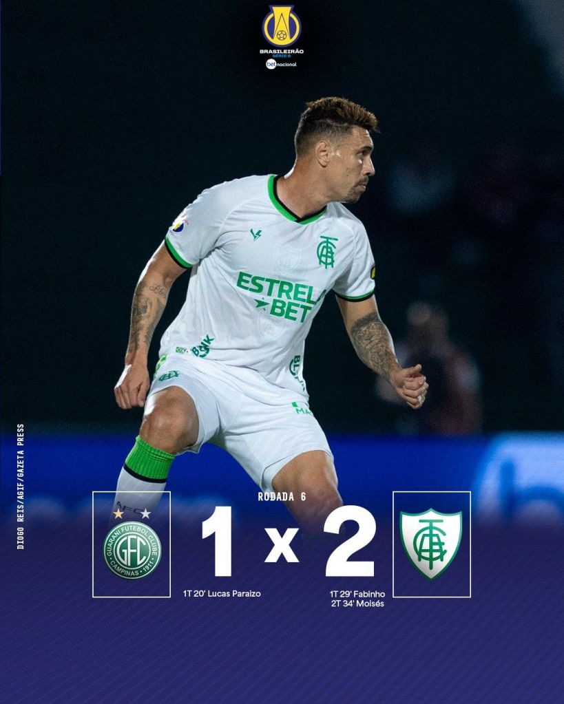 Na Segunda (20), o Guarani até saiu na frente, mas o América Mineiro conquistou a virada, graças ao Profeta Moisés. O Mecão voltou pro G4, já o Bugre segue no buraco.