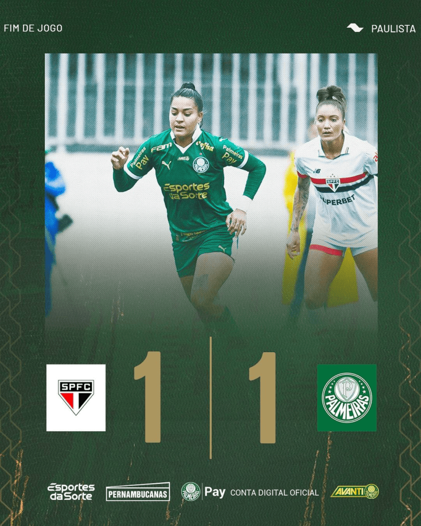 No primeiro tempo, Rafa Mineiro colocou as tricolores na frente, enquanto que no segundo tempo, a craque do jogo, Brena, empatou para as palestrinas.