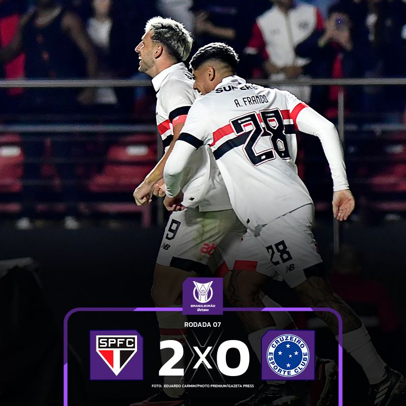 No MorumBis, o São Paulo manteve a boa fase, e em outro grande jogo de Lucas Moura e Calleri, garantiu a vitória sobre o Cruzeiro. Observação: O Tricolor entrou no G4.