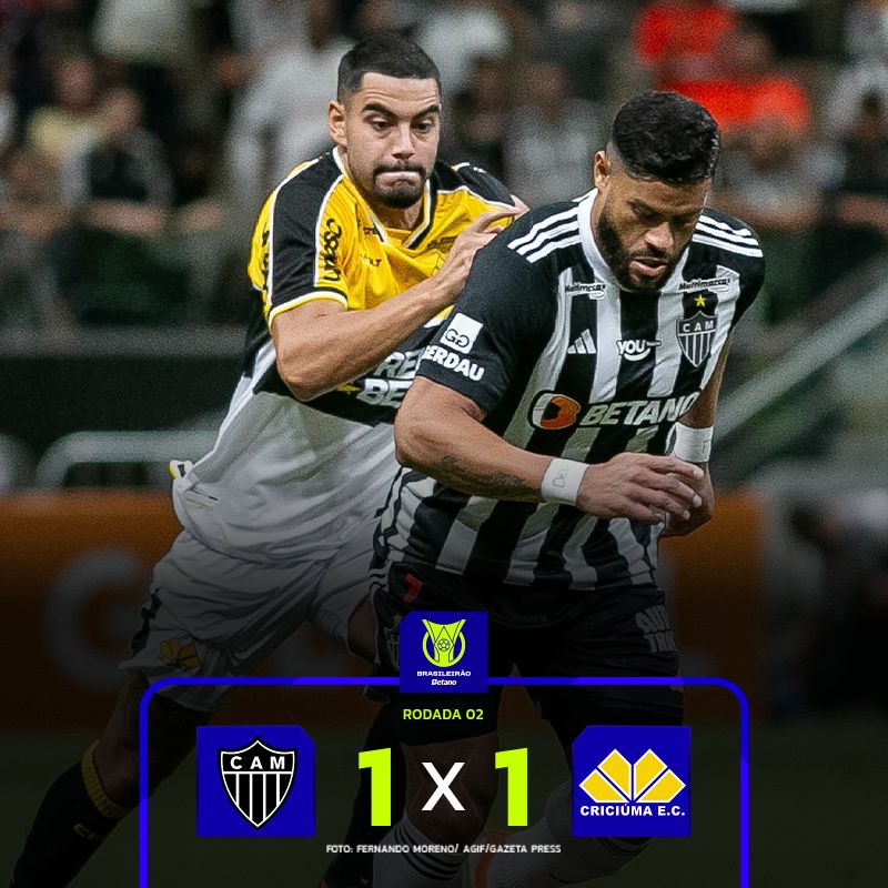 Na Arena MRV, o Atlético Mineiro vacila na reta final e o Criciúma aproveita para arrancar o primeiro ponto como visitante no Brasileirão.