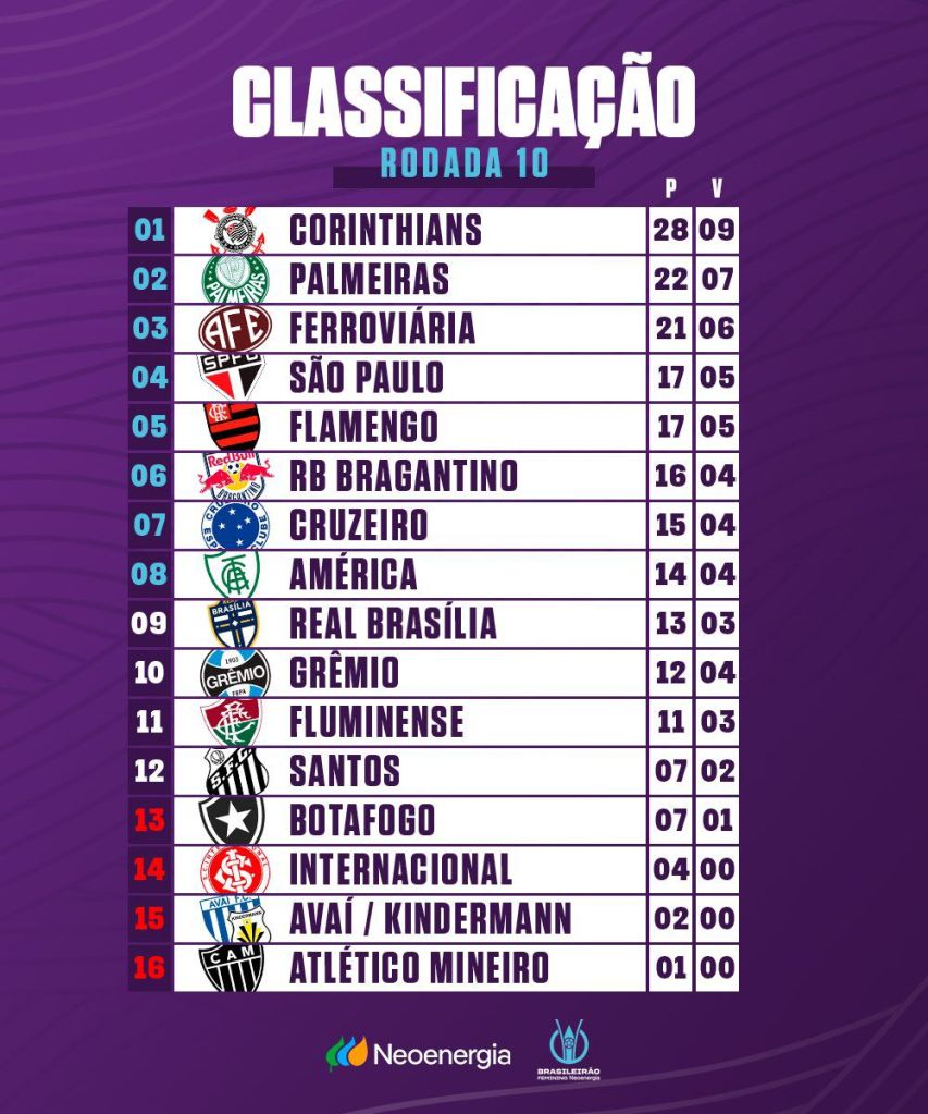 Na Neo Química Arena, Corinthians e São Paulo protagonizaram o melhor jogo do campeonato. Se Jennifer colocou as Brabas na frente, ainda no primeiro tempo, Dudinha infernizou a defesa corintiana, sendo protagonista nos gols de Mariana Santos e Bia Menezes, na sensacional virada das tricolores, no início do segundo tempo. Entretanto, as Brabas não se entregaram, e com gols de Vic Albuquerque e Jaqueline (olha a lei da ex agindo), nos acréscimos, garantiram mais uma vitória e a invencibilidade das brabas, líderes e já classificadas para as Quartas. O São Paulo segue no G8, mas com a amarga sensação de quem deixou a vitória histórica mudar de lado no finzinho.