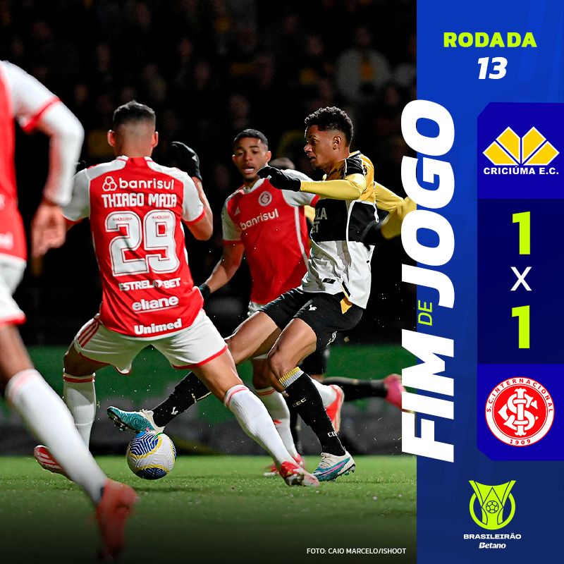 No Heriberto Hülse, o Internacional até se sentiu em casa, ao abrir o placar contra o Criciúma, porém o Tigre mostrou que no Majestoso, inquilino sai no máximo com 1 ponto. O empate afastou o Internacional do G4 e colou o Criciúma próximo do Z4. Mas é bom relembrar que ambas equipes continuam com jogos pendentes.