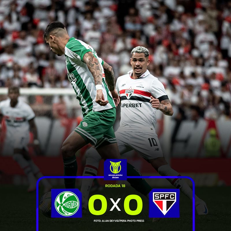 No Mané Garrincha, São Paulo e Juventude ficaram no 0x0. O resultado foi ruim para ambos, pior para o alviverde Gaúcho que saiu na bronca com a arbitragem. O São Paulo saiu do G4, enquanto que o Ju segue no meio da tabela.