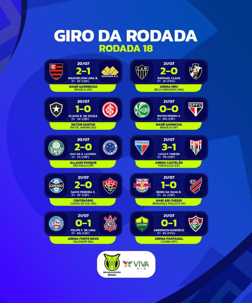 No Nabizão, o Red Bull Bragantino saiu na frente com o gol de Raul. Porém, teve que suportar a pressão do Athletico Paranaense, inclusive por ficar com um jogador à menos por todo o segundo tempo, para sair com mais 3 pontos. O Furacão é que começa a ficar distante das primeiras posições.