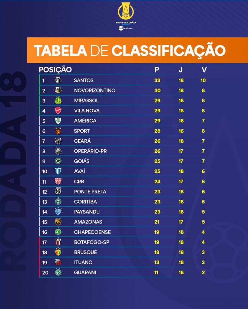 Três partidas emocionantes! Em Campinas, finalmente, o Guarani voltou a vencer no Campeonato. O Bugre superou o Brusque. Ambos times seguem no Z4. Enquanto isso no Independência, o Ceará foi valente e arrancou um empate com o América. Jogando no Rei Pelé, o Santos só empatou com o CRB, mas segue muito líder da Segundona. CRB aumenta série invicta.