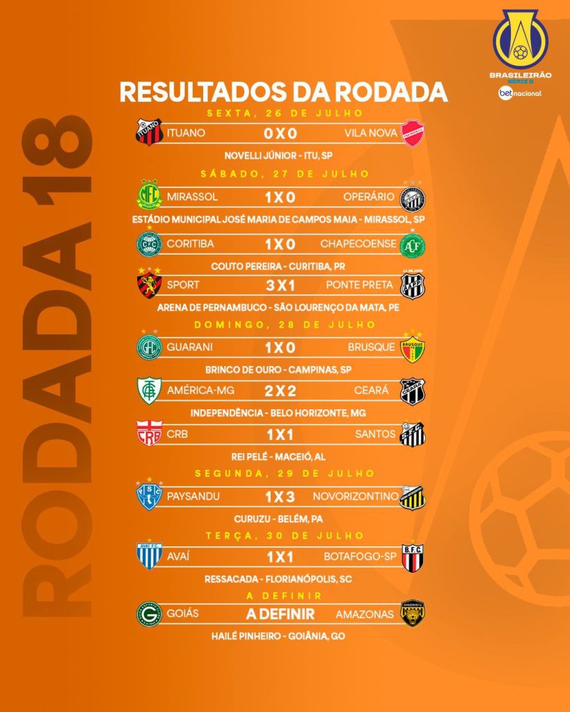 Coritiba vence jogo do desespero contra Chapecoense e abre distância do Z4, já a Chape segue como porteira da zona de rebaixamento. Sport dá show na Arena Pernambuco e atropela Ponte Preta. Leão da Ilha segue firme na luta pelo G4. Em duelo direto pelo G4, Mirassol bateu o Operário em casa e segue sonhando com a Série A. Ou seja, foi o sabadão dos leões.