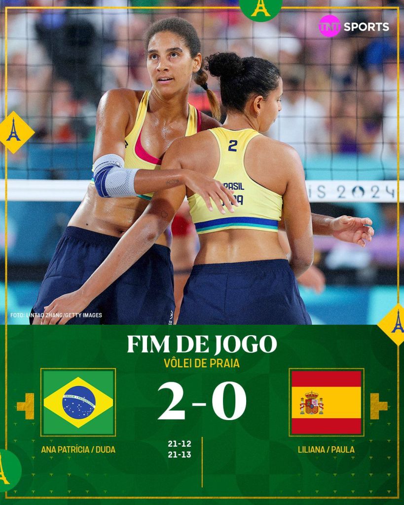Ainda pela Primeira Fase do torneio, Duda e Ana Patrícia venceram com tranquilidade a dupla espanhola Liliana e Paula. Uma vitória por 2×0 com autoridade e total controle da partida.
