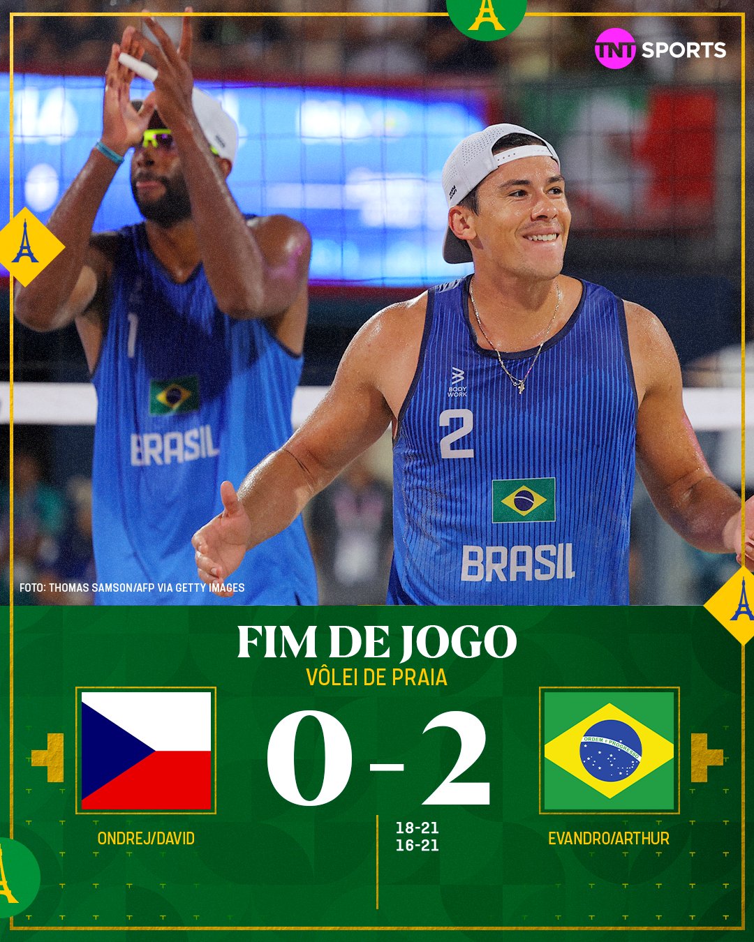 Diante os tchecos, Perusic e Schweiner, a dupla brasileira Evandro e Arthur Lanci demonstraram mais uma vez o quanto tão entrosados e desejando sair de Paris com uma medalha. A vitória veio com gosto de talento e determinação. Apesar do 2×0 foi um jogo dificílimo, aonde a dupla do AEST soube definir quando era preciso. Que venham as Oitavas!