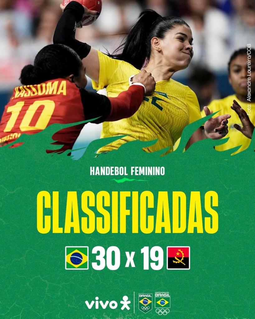 Estamos nas Quartas! Imaginava-se um jogo complicado por ser um confronto direto por uma vaga nas Quartas, entretanto desde o primeiro minuto, só deu Brasil! Alias, outro jogo espetacular da goleira Gabi, catando tudo o que as angolanas tentavam fazer de gols. Um resultado que não só classificou, mas que deu moral para os próximos confrontos. Parabéns, meninas! Estamos de volta às Quartas!