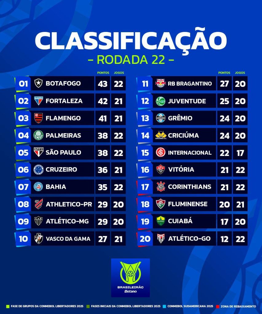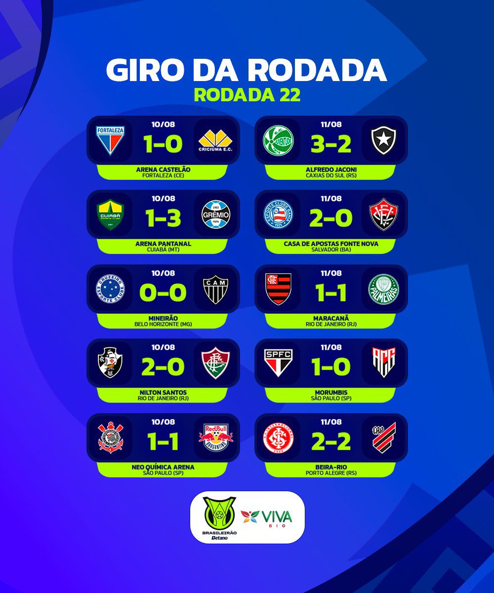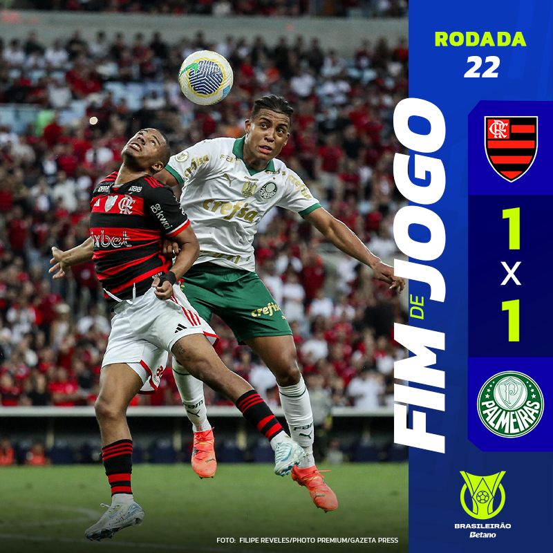 No Maracanã, nem mesmo o erro da arbitragem, não vendo um soco na cara de Pulgar em Richard Rios, atrapalhou o baita jogo entre os maiores times do país nos últimos anos. O Flamengo saiu na frente com Arrascaeta, mas no final do jogo, Luighi garantiu o empate para o verdão. O resultado manteve os dois times no G4.