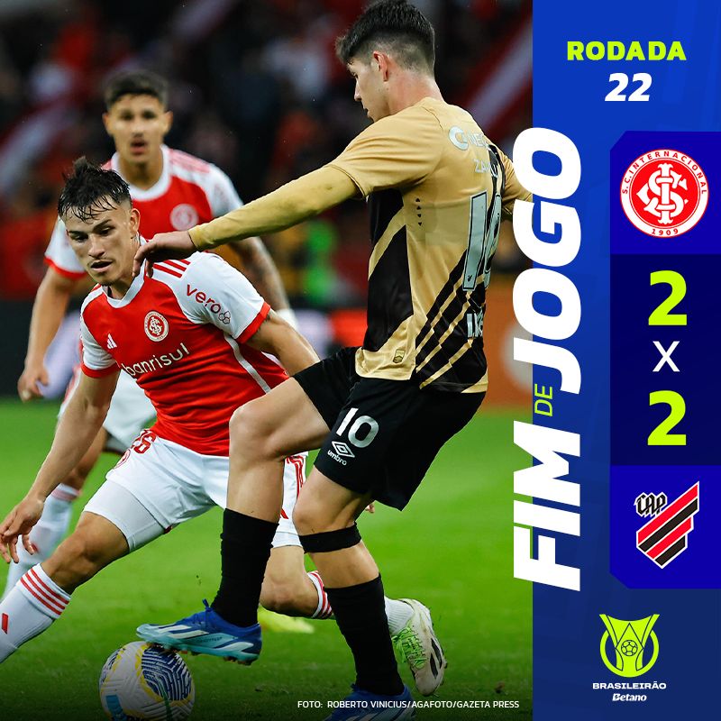 No Beira-Rio, um jogaço entre Internacional e Athletico Paranaense. O Colorado abriu o marcador, o Furacão virou o jogo, e no fim da partida, o Internacional conquistou o empate. Um 2×2 ruim para ambos, mas ótimo para quem gosta de jogaços!