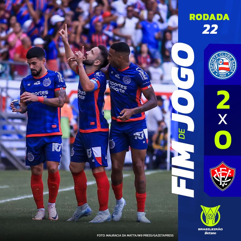 Na fonte nova, o Bahia superou Vitória no clássico ba-vi. O triunfo do tricolor reaproximou o Bahia do G6, e apesar da derrota, o Vitória segue fora do Z4.