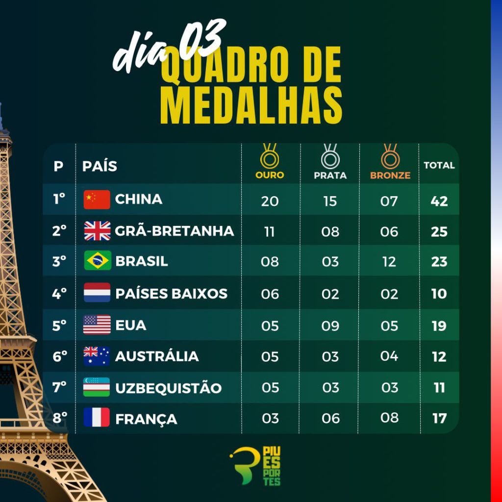 Coloquem mais 10 medalhas em nossa galeria! O Brasil segue exuberante em Paris! Nossos atletas seguem batendo recordes, inclusive, Carol Santiago tornou-se, hoje, a maior medalhista de ouro do Brasil em Jogos Paralímpicos. Após mais um dia maravilhoso, o Brasil segue top 3 no quadro de medalhas.