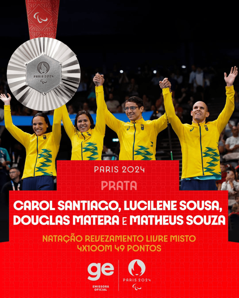 Um dia para comemorar! A delegação brasileira em Paris, dos Jogos Paralímpicos, superou a marca de 50 medalhas conquistadas! Só hoje, mais 9 foram para a coleção! Saímos do Top 5 em números de Ouros, mas seguimos por lá entre as medalhas conquistadas! Essa delegação quer muito fazer história (e já está fazendo!) Alias, hoje teve mais um ouro para Carol Santiago, nossa maior medalhista de Ouros da história do país em Paralimpíadas!