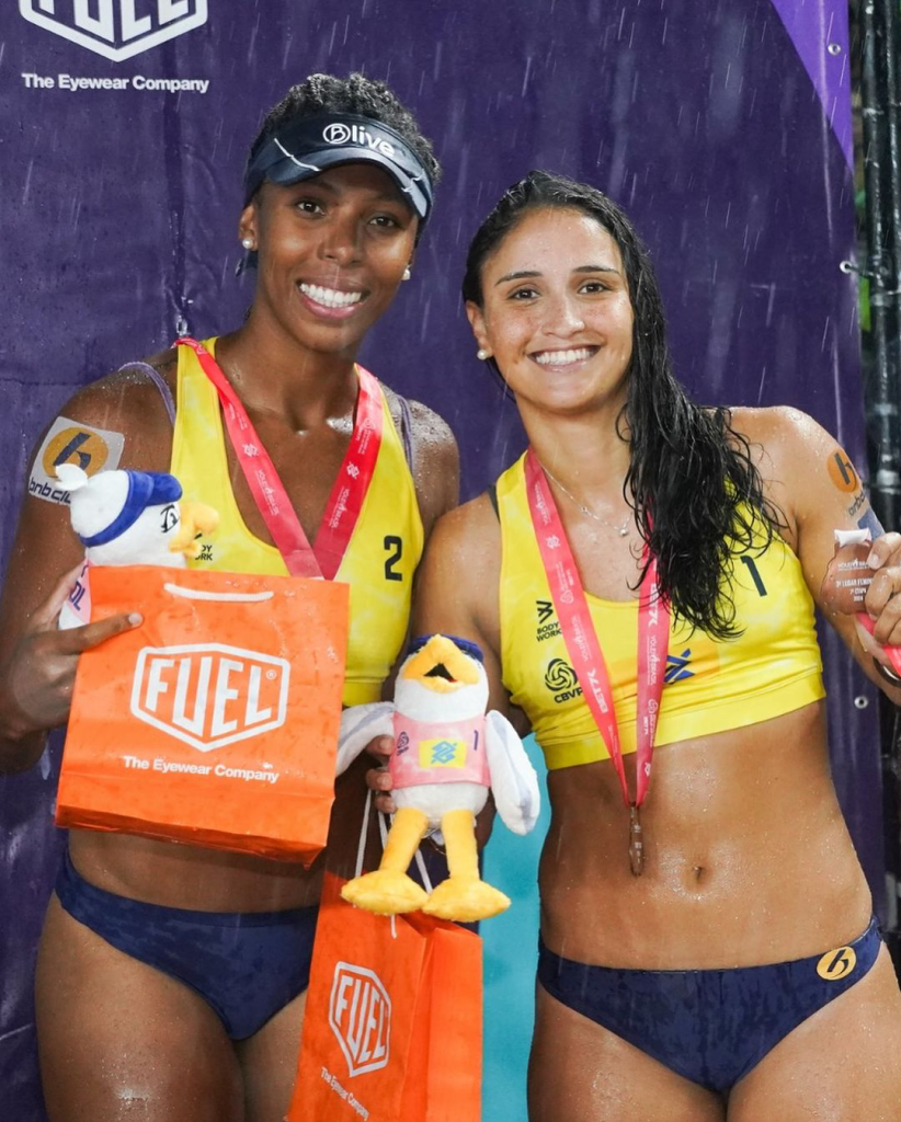 7ª etapa do Circuito Brasileiro realizado e pela 6ª vez consecutiva, Verena e Kyce alcançaram o Top 4. Em outra etapa, com apenas uma derrota, nas Semifinais para a dupla campeã da etapa formada por Thamela e Vic, as meninas do BNB Clube subiram mais uma vez no pódio. A vitória sobre Thaynara e Elize Maia por 2×0 (21×19/21×19) garantiram não só o bronze como as manteve na liderança do Circuito Brasileiro de Vôlei de Praia. É muito talento, garra e determinação numa dupla só! Vamos com tudo, meninas! O sonho do título brasileiro segue muito vivo!