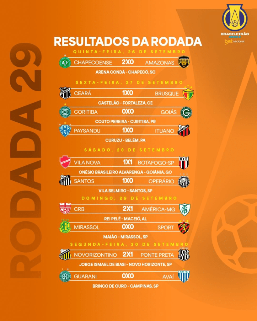 Novorizontino e Santos mantém a ótima fase e estão cada vez mais próximos da Série A em 2025. Campeonato segue embolado na luta pelas demais posições da tabela, com exceção ao Guarani que continua muito lanterna.