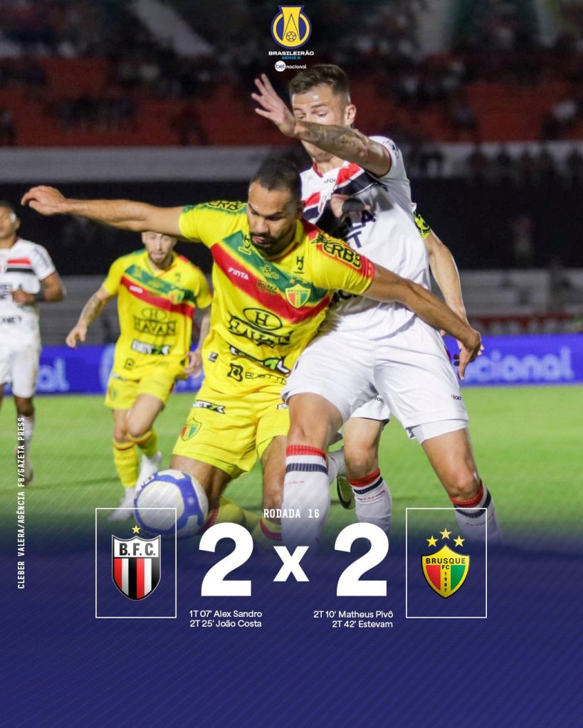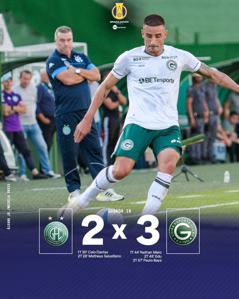No domingo (21), o Goiás conseguiu uma virada épica com um jogador à menos diante o Guarani e reaproximou-se do G4. O Esmeraldino perdia o jogo até os 49 do segundo tempo. O Bugre segue afundado na lanterna. Na outra partida do dia, o o Botafogo de Ribeirão Preto chegou a estar duas vezes na frente do marcador, mas o Brusque não se entregou e conquistou empate fora de casa. O 2×2 foi terrível para ambos que seguem na zona de rebaixamento.