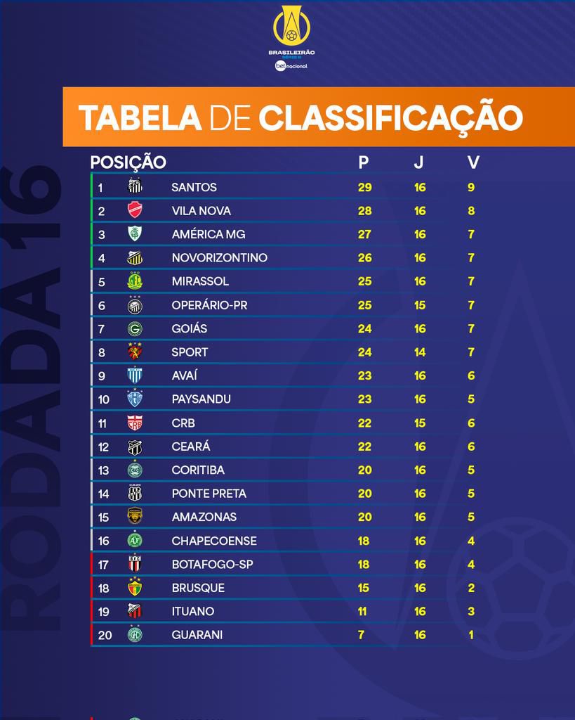 Nesta quinta (18), no OBA, Vila Nova e Santos fizeram o melhor jogo desta segundona até aqui. O empate foi um placar justo diante uma partida que envolveu dois times que querem muito estar na Série A no próximo ano. No outro confronto da noite, o Novorizontino bateu a equipe da Chapecoense, com um gol feito no final do primeiro tempo. Com o resultado, o Tigre está mais vivo do que nunca na luta pelo acesso, já a Chape segue seu martírio contra a terceirona.