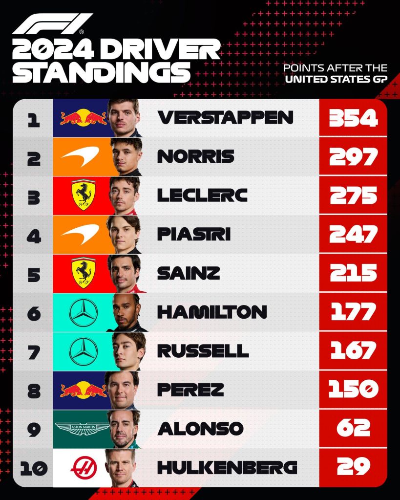 Em uma corrida exuberante da Ferrari, Charles LeClerc venceu a terceira no campeonato. O monegasco liderou de ponta a ponta e garantiu a vitória no GP dos Estados Unidos. Sainz veio logo em seguida, não dando chance para ninguém, uma corrida totalmente da Ferrari.