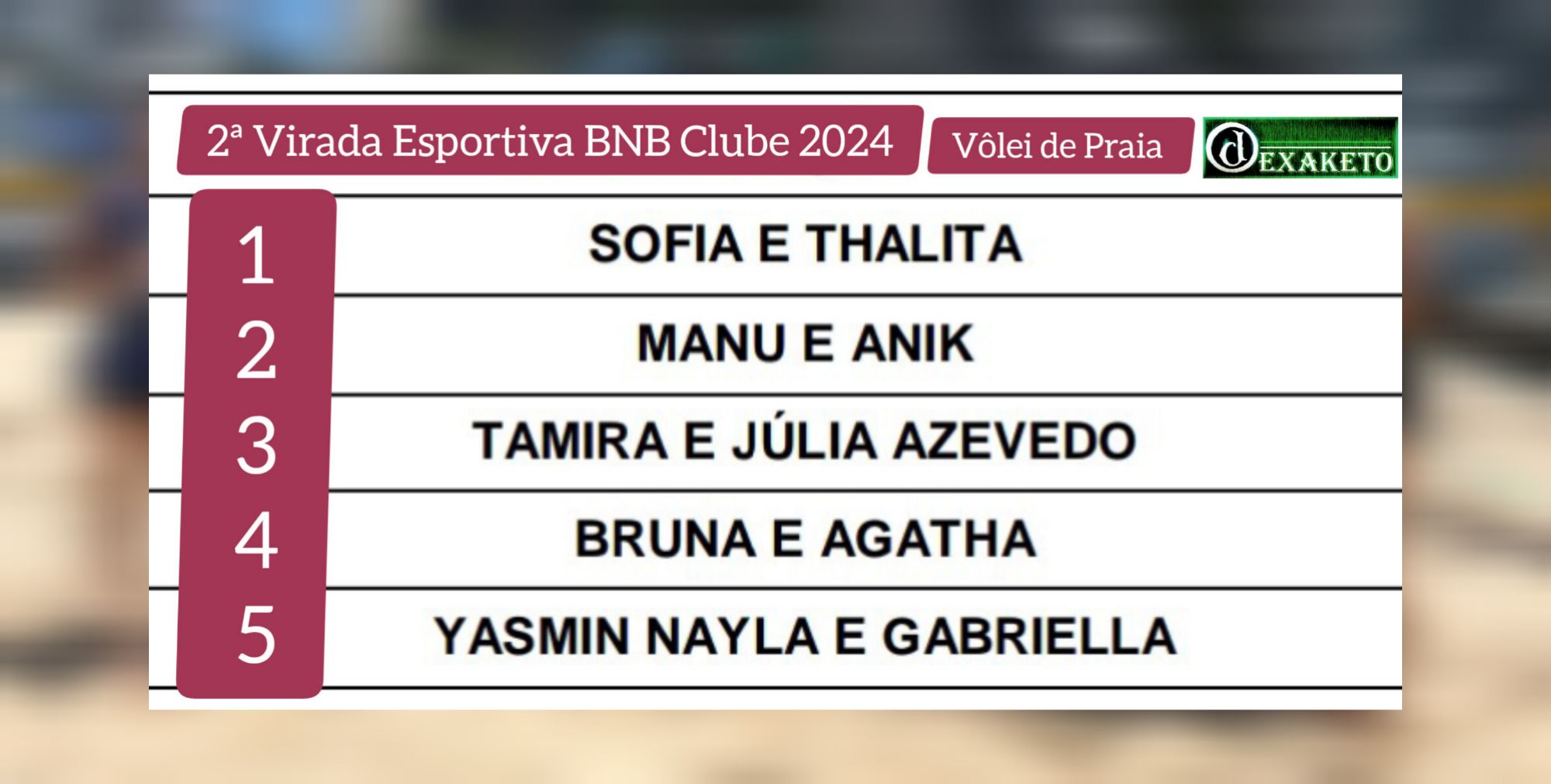 Entre as 16 horas de Sexta-Feira (22) e de Sábado (23) ocorreu no BNB Clube, a sua 2ª Virada Esportiva. O evento reuniu atletas e alunos das diversas modalidades existentes dentro do clube. Entre os torneios realizados, tivemos o torneio de Vôlei Feminino e de Vôlei de Praia Feminino.