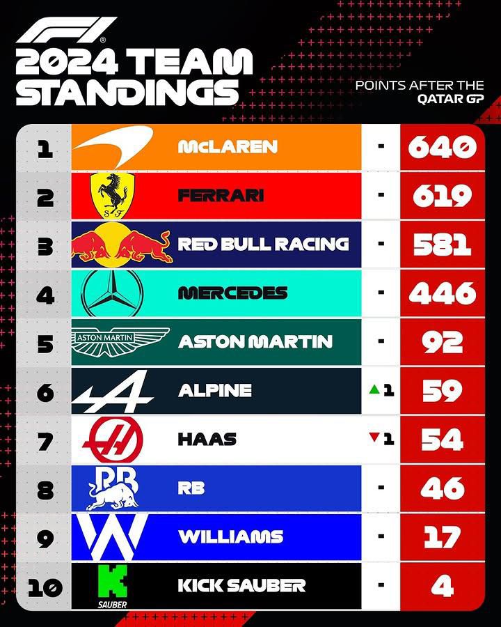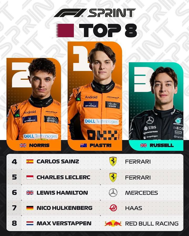 No Sábado, na última Sprint do ano, a McLaren dominou a prova do início ao fim. Lando Norris cedeu a Vitória na última curva para Piastri, como uma forma de agradecer pelas vezes em que cedeu posição para Norris buscar o título.