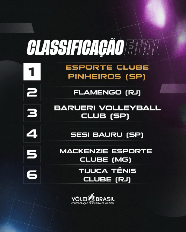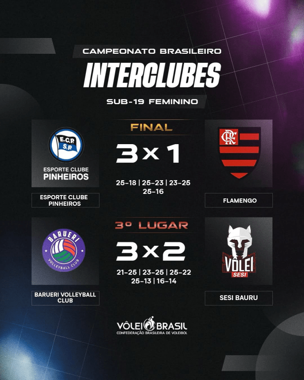 Venceu o melhor! Com um campeonato perfeito, o Pinheiros superou os traumas de outras edições, evitou o Tri do Flamengo e carimbou o título de campeão do CBI Sub-19 de Vôlei Feminino 2024.