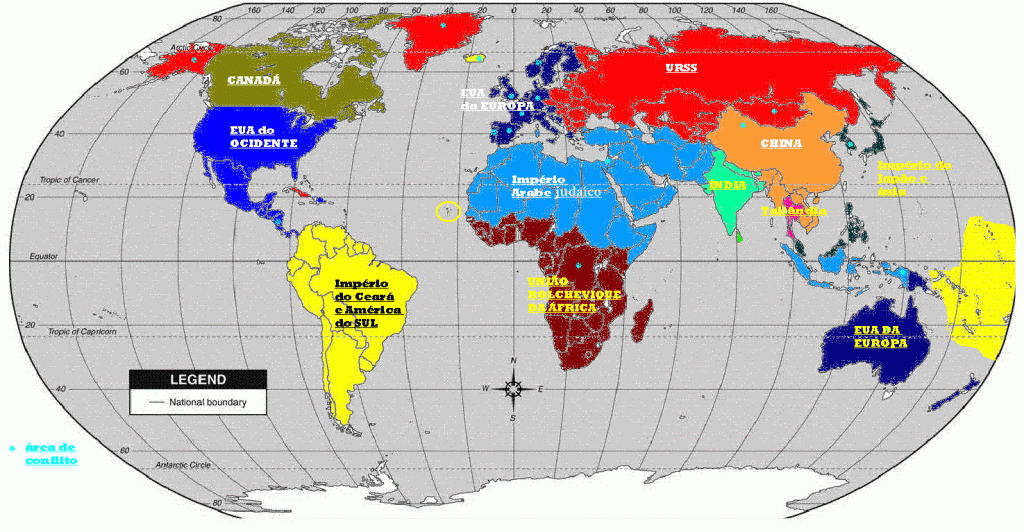 Ao chegarem na tal casa, o cientista começou a contar a história. Ele explica que o mundo vive um sentimento de pré-guerra. Após a 4ª guerra mundial ou guerra ecológica, o Império do Ceará anexou a América do Sul, as ilhas oceânicas e a Antártida ao seu território de maneira pacífica, ou seja, lhes dando proteção e crescimento econômico, enquanto eles cediam território ao império. Enquanto isso, a Europa se sucumbiu, se tornando colônia dos EUA e da URSS, que voltou a existir após a guerra. Os partidos comunistas se aliaram e construíram a União Bolchevique Africana. Já na Ásia, a China e o Japão conquistaram, através de guerras, grande parte do território asiático. Os países árabes, a Turquia, Israel e a Indonésia formaram o Império Árabe-Muçulmano-Judaico.