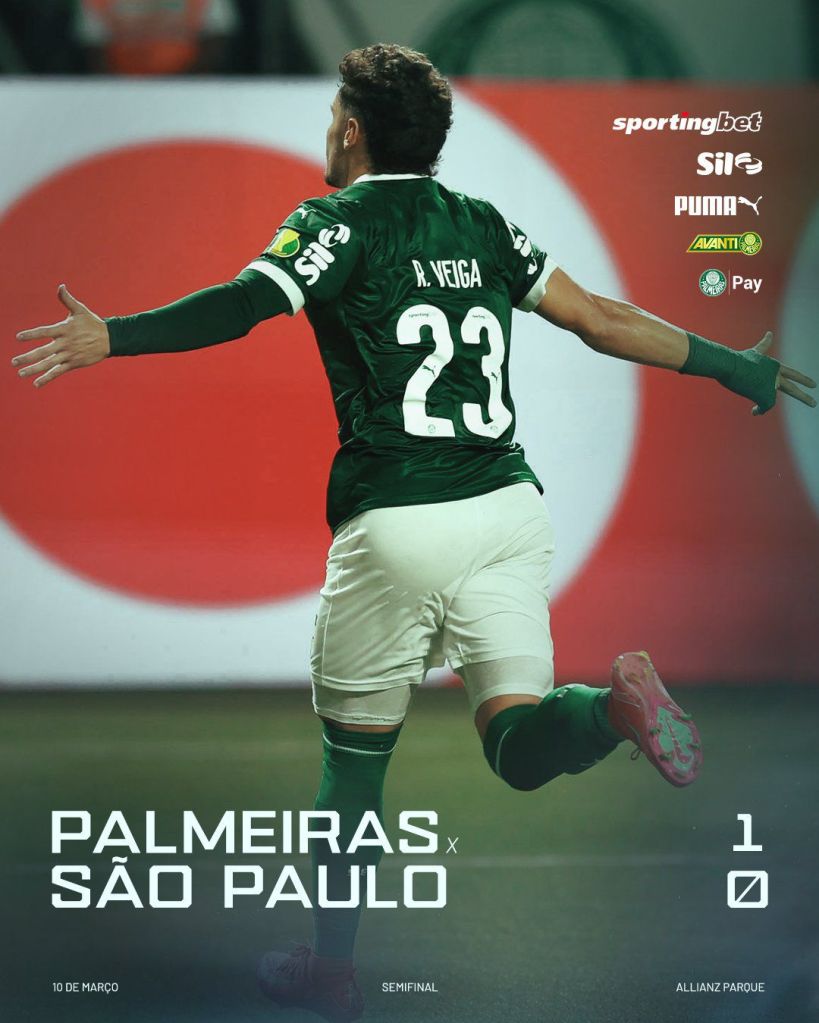 Em um Allianz Parque lotado, o Verdão superou o São Paulo por 1×0, com um gol de pênalti marcado por Raphael Veiga na reta final do primeiro tempo. Lance polêmico, mas no meu entender, nada imparcial, foi pênalti, Arboleda esticou a perna para derrubar o estreante Vitor Roque.