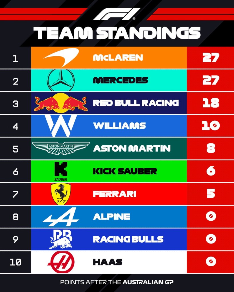 A Williams, com Albon, a Sauber, com Hulkenberg, e a Aston Martin, com Stroll, também pontuaram, e 7 das 10 equipes do grid já saíram do zero no 1º GP.