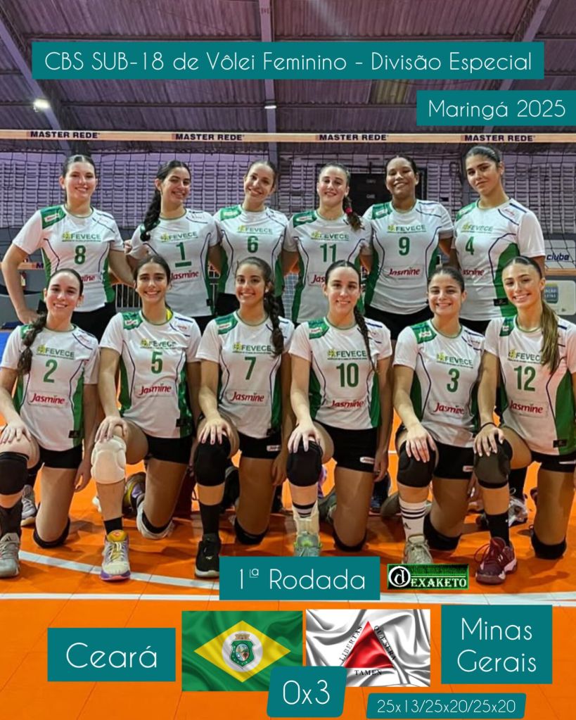 Em Maringá, a seleção cearense não conseguiu estrear com vitória na divisão especial do CBS Sub-18 de Vôlei Feminino. Diante das campeãs de 2024, a seleção mineira, a seleção cearense saiu de quadra derrotada por 3×0 (25×13/25×20/25×20).