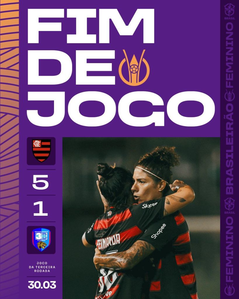 Na Ilha, o Flamengo consegue sua primeira vitória no campeonato, e que vitória! Com 2 gols de Cristiane e mais uma ruma de gols, as rubro-negra atroperaram o 3B e garantiram os 3 pontos para as cariocas.