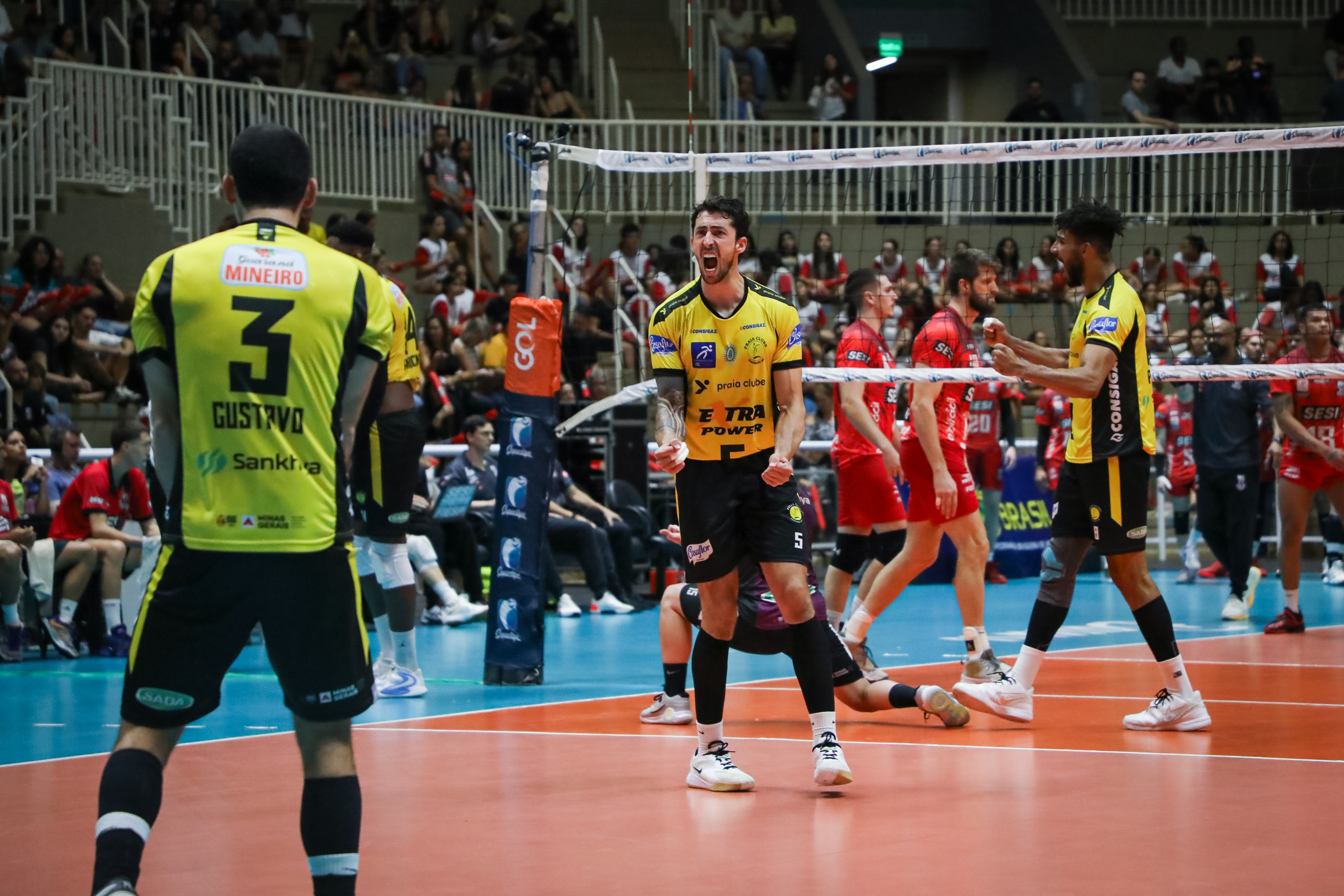 Em uma partida épica, com direito a um 41×39 no primeiro set, o Praia Clube não se intimidou com o barulho da torcida, e superou o atual campeão da Superliga, o SESI Bauru, garantindo uma virada na série de confrontos de quartas e uma inédita vaga nas semifinais.