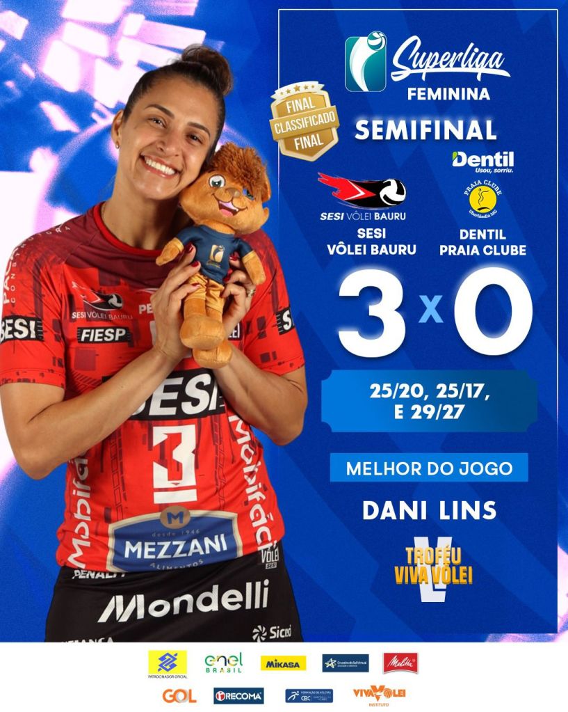 Com o ginásio em Bauru lotado, o SESI Bauru não deu chances para o Praia Clube sonhar com um lugar na Final. Com exceção do disputadíssimo terceiro set, as mandantes nem cogitaram sentir a dor de 2024, quando o Praia virou a série de Quartas e avançou naquela edição de Superliga.
