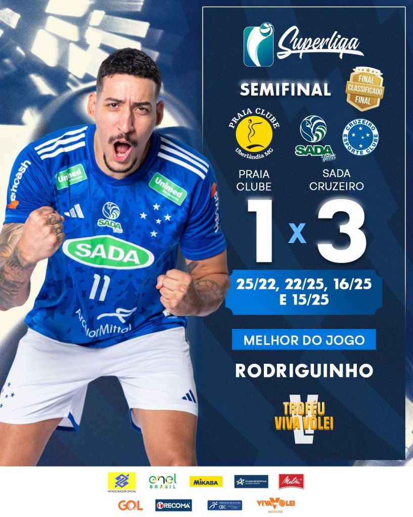 Em Uberlândia, o Sada Cruzeiro até deu um susto na sua torcida ao perder o primeiro set, porém dominou os sets seguidos, confirmando à 4ª vitória consecutiva nos playoffs e um lugar na Grande Final.