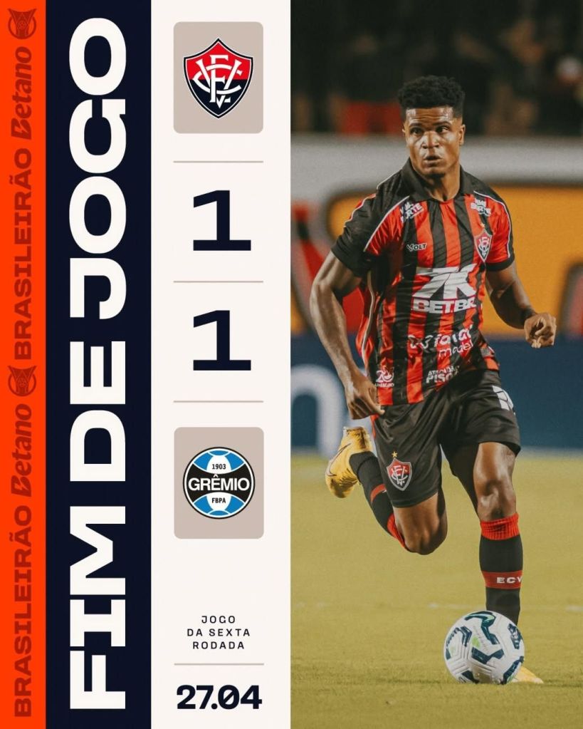Em Salvador, Vitória e Grêmio se doaram, mas o empate foi péssimo para ambos, que permanecem no Z4.